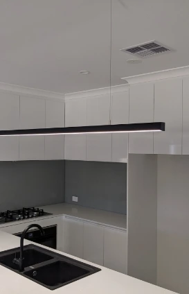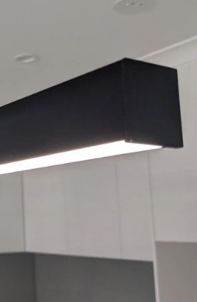 Linear pendant lights are the perfect source of task lighting in the kitchen, dining room, and other spaces in your home where you would need adequate illumination. Our range of linear pendant lighting features slimline frames, some of which are custom made to suit the needs and preferences of our customers. For custom made linear pendants, you can choose the sized profile you prefer, length, dimming options, brightness, and colour temperature.