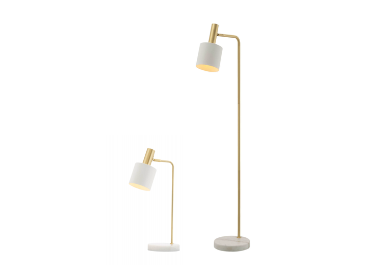 The Addison marble base table lamp is an elegant table or study lamp with a white coloured shade complimented with a matte brass metal stand and a white marble base. Also available as a floor lamp and in a jade green finish.