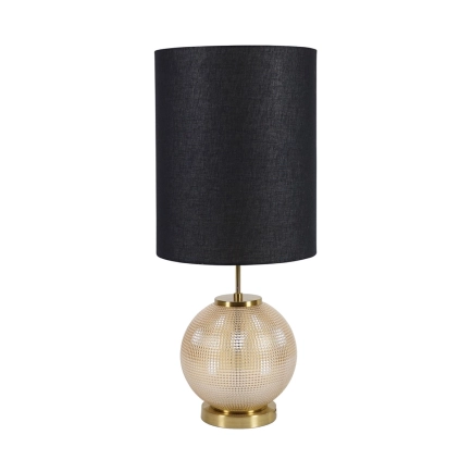 The Amber Sphere Sahara is a sophisticated table lamp featuring a textured round base, topped with a black fabric drum shade. It will add a touch of class to any room in the home & provide a lovely mood lighting feature.