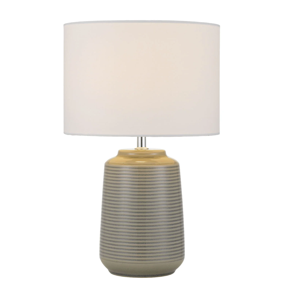 The Anni is a casual and subtle cute little table lamp. A simple ribbed ceramic body saturated in a glossy glaze. Topped in a classic, white poly-cotton drum shade. Also available in cream. THIS PRODUCT IS NOT AVAILABLE FOR SHIPPING DUE TO HIGH RISK OF DAMAGE. IN-STORE ONLY PURCHASE.