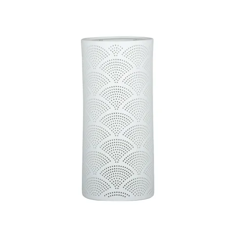 The Arco table lamp is a unique perforated white porcelain which will create a unique mood lighting feature. THIS PRODUCT IS NOT AVAILABLE FOR SHIPPING DUE TO HIGH RISK OF DAMAGE. IN-STORE ONLY PURCHASE.