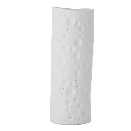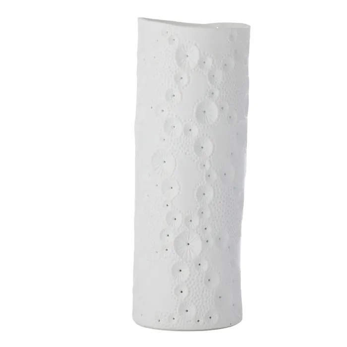 The Ari table lamp is an elegant perforated ceramic lamp featuring an organic pressed shell feature. THIS PRODUCT IS NOT AVAILABLE FOR SHIPPING DUE TO HIGH RISK OF DAMAGE. IN-STORE ONLY PURCHASE.