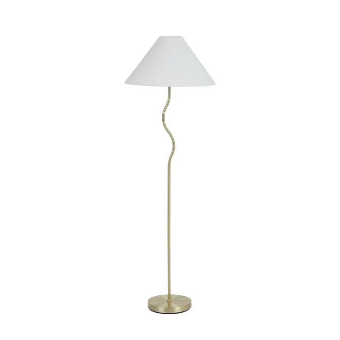 The Becker table lamp is a uniquely shaped gold stand with a white tapered shade. A very simple, yet stylish design. THIS PRODUCT IS NOT AVAILABLE FOR SHIPPING DUE TO HIGH RISK OF DAMAGE. IN-STORE ONLY PURCHASE.
