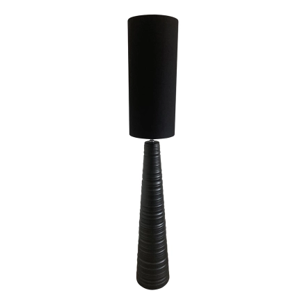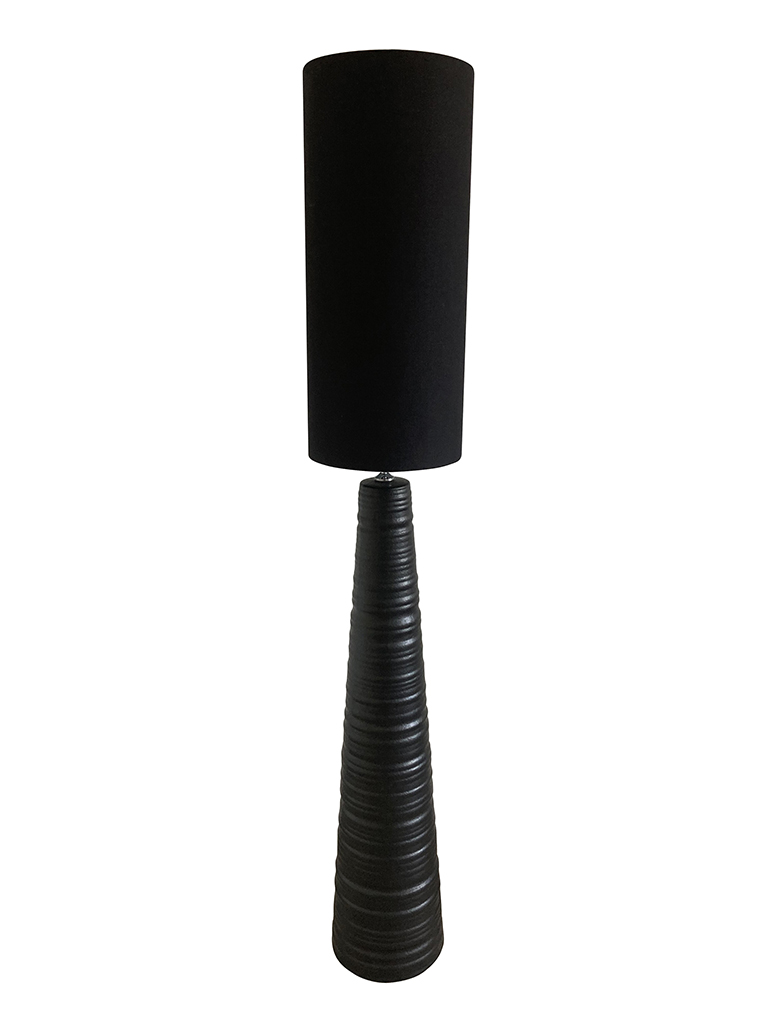 The Belize floor lamp is a very tall and striking lamp. The textured, organic ceramic base it topped with a very long slender black shade which will create a lovely mood lighting effect. Available in black and white. THIS PRODUCT IS NOT AVAILABLE FOR SHIPPING DUE TO HIGH RISK OF DAMAGE TO THE SHADE. IN-STORE ONLY PURCHASE.