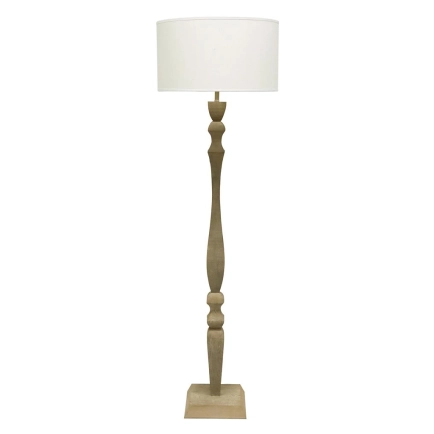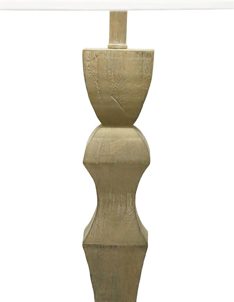 The Carrie floor lamp features a unique shapely base in a natural light wood tone, coupled with a white fabric drum shade. It will compliment many home decor types and add a lovely lighting feature to many rooms in the home. THIS PRODUCT IS NOT AVAILABLE FOR SHIPPING DUE TO HIGH RISK OF DAMAGE TO THE SHADE. IN-STORE ONLY PURCHASE.