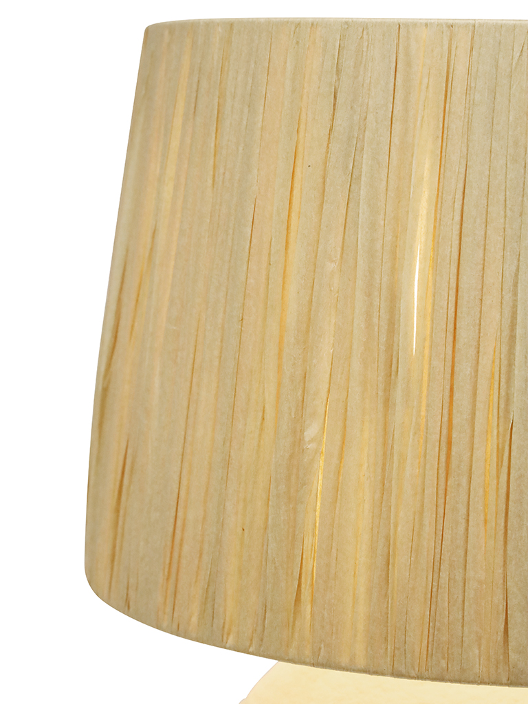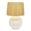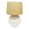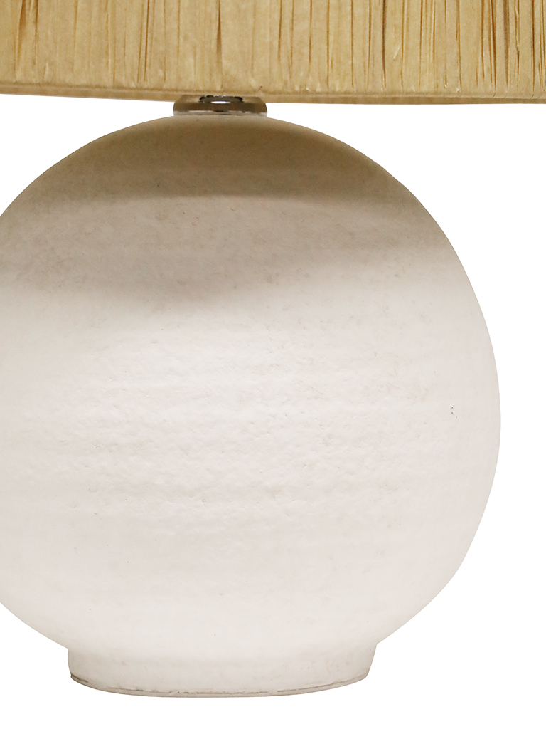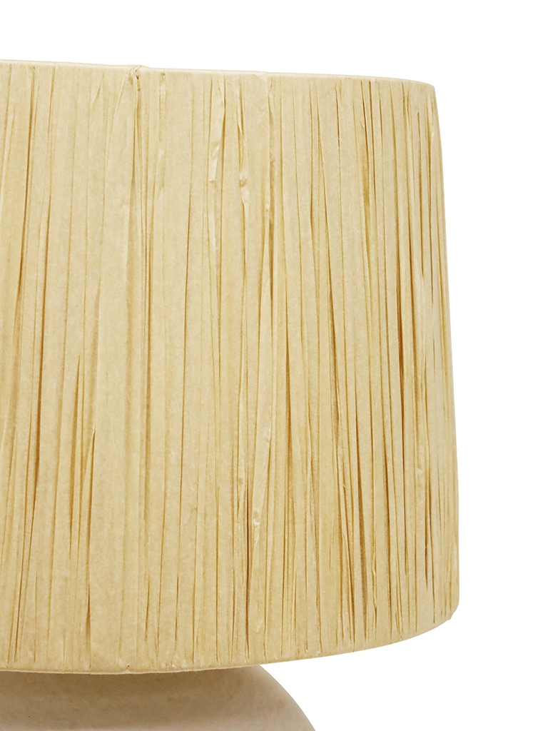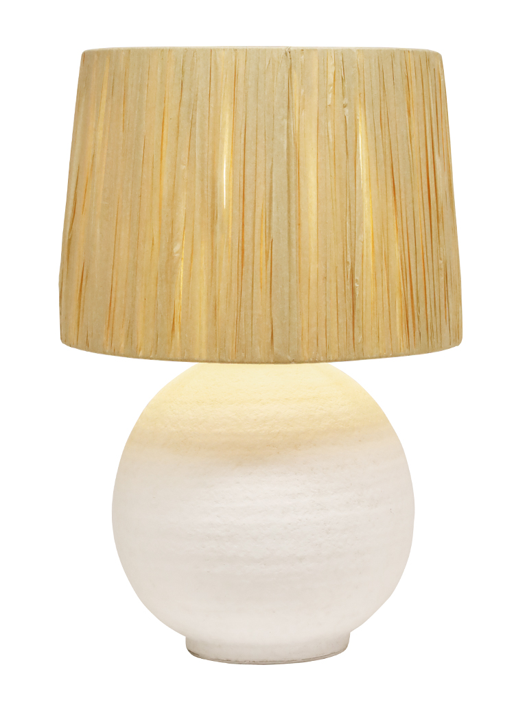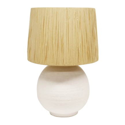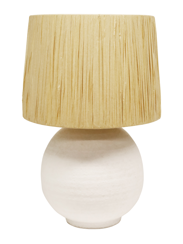 The Corfu Table lamp features a unique textured base coupled with a raffia shade. It will add a striking feature to any bedroom or living area of the home. It will accommodate many globe types allowing you to create a level of brightness to suit your needs. THIS PRODUCT IS NOT AVAILABLE FOR SHIPPING DUE TO HIGH RISK OF DAMAGE TO THE SHADE. IN-STORE ONLY PURCHASE.