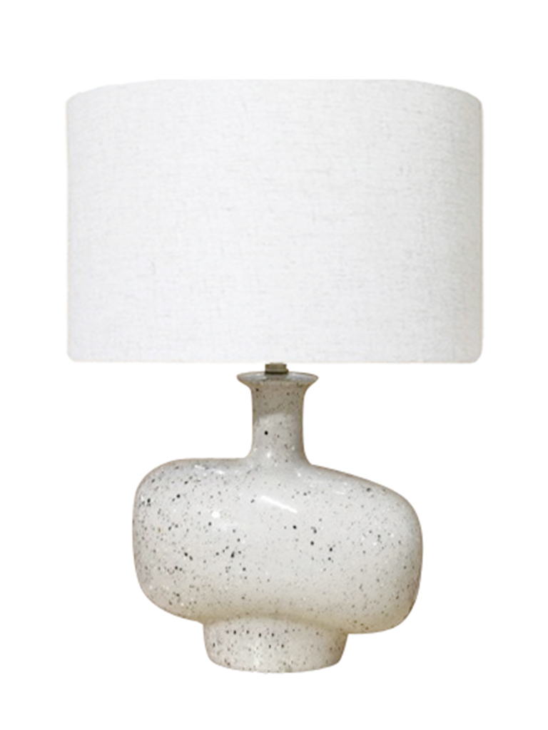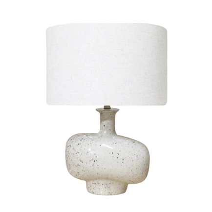 The Cottesloe table lamp features a speckled beige ceramic body and is topped with a white fabric shade. THIS PRODUCT IS NOT AVAILABLE FOR SHIPPING DUE TO HIGH RISK OF DAMAGE. IN-STORE ONLY PURCHASE.