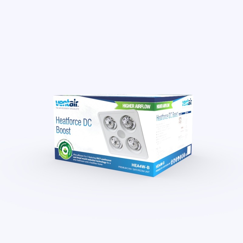 Heatforce DC Boost - Higher airflow ultra efficient 3 in 1 bathroom unit featuring our Mould Reduction Technology, 24/7 continuous and timed functions for a drier bathroom and a healthier home.