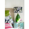 This SHADE ONLY detailed with a navy blue floral pattern on a velvelt drum shade. Perfect to combine with your own table lamp base or select from our range of bases only. This beautifully hand stitched lamp shade is purchased from the traditional craft regions in India, where these products are produced by craftsmen working in traditional workshops. COLOURS CAN CHANGE THEIR TONE IN A PHOTOGRAPH - there's nothing like seeing the real thing so we suggest you shop in our showroom for this range.