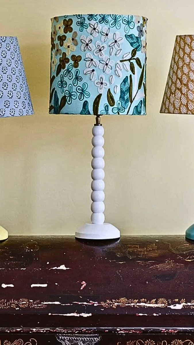 This beautifully hand stitched lamp shade is purchased from the traditional craft regions in India, where these products are produced by craftsmen working in traditional workshops.  SOLD AS A SHADE ONLY.  THIS PRODUCT IS NOT AVAILABLE FOR SHIPPING DUE TO HIGH RISK OF DAMAGE.  IN-STORE ONLY PURCHASE.
