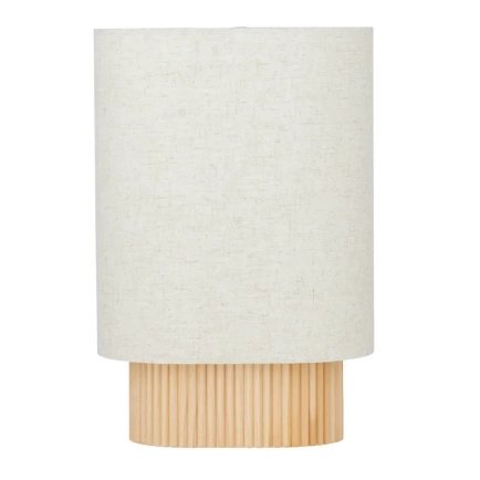The Kendall Table Lamp is a unique ribbed timer base topped with an oval/drum shaped natural fabric shade. Perfect as a bedside lamp, or side table in a living room for ambient lighting. THIS PRODUCT IS NOT AVAILABLE FOR SHIPPING DUE TO HIGH RISK OF DAMAGE. IN-STORE ONLY PURCHASE.