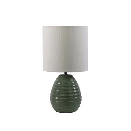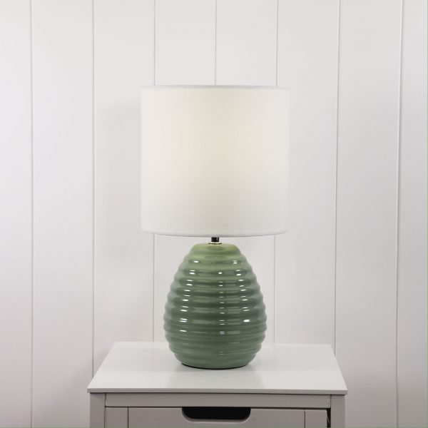The LAUREL textured ceramic table lamp comes complete with a fabric drum shade. This designer lamp is perfect for a bedside or study nook in a coastal or hamptons styled home. The on/off switch is located on the cord. THIS PRODUCT IS NOT AVAILABLE FOR SHIPPING DUE TO HIGH RISK OF DAMAGE TO THE SHADE. IN-STORE ONLY PURCHASE.