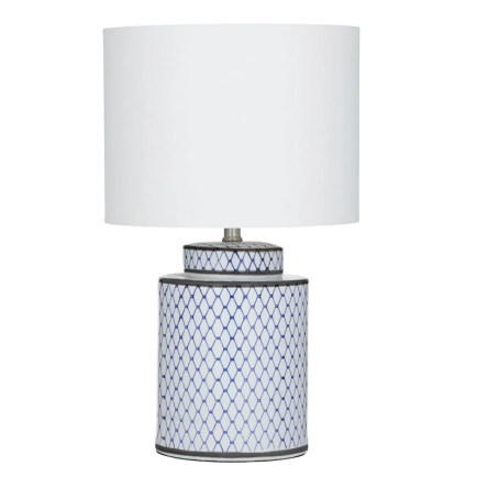 The Leila is a classic traditional Hamptons table lamp. It features blue and white porcelian base with gold trim and topped with a white fabric shade. Perfect for a modern, Hamptons or coastal home decor style. THIS PRODUCT IS NOT AVAILABLE FOR SHIPPING DUE TO HIGH RISK OF DAMAGE. IN-STORE ONLY PURCHASE.