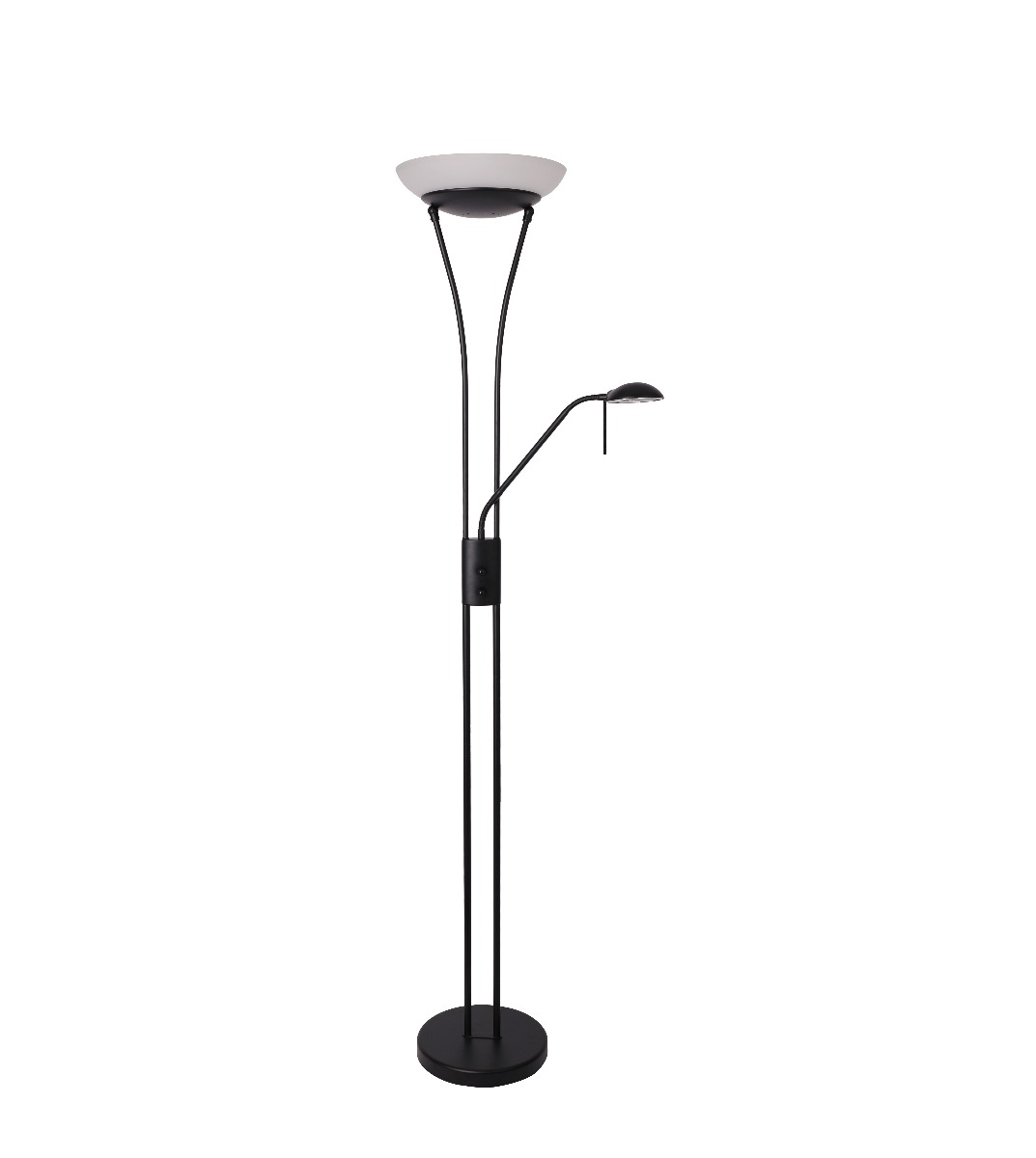 The Reed uplighter is a modern floor lamp featuring an uplighter and a adjustable reading lamp. It has a dimmable feature and will add a stunning light feature to any living area of the home providing either a soft mood light or bright reading light.