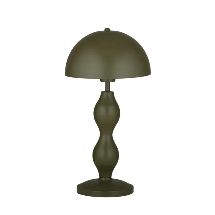 The Lucca table lamp is a modern design available in a striking deep olive green. The metal shade design will aim the light down onto the table creating a dramatic mood lighting effect.