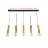 The Metro 5 Light bar pendant will make a feature over any kitchen bench or Dining table. It has 5 single pendants spaced over a Long 1150mm black ceiling Bar, the lights are spaced at 250mm. The Tube pendants are finished in an aged bronze. (Globes not included)