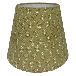 This SHADE ONLY detailed with a green floral pattern on a fabric tapered drum shade. Perfect to combine with your own table lamp base or select from our range of bases only. COLOURS CAN CHANGE THEIR TONE IN A PHOTOGRAPH - there's nothing like seeing the real thing so we suggest you shop in our showroom for this range. THIS PRODUCT IS NOT AVAILABLE FOR SHIPPING DUE TO HIGH RISK OF DAMAGE. IN-STORE ONLY PURCHASE.