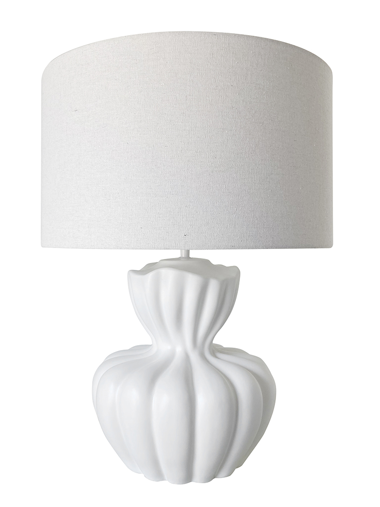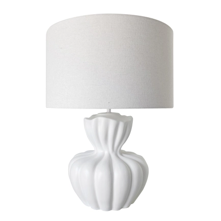 The Naia Lamp features a lovely deep grooved white ceramic base and is topped with a natural drum shade. It will provide a lovely lighting feature to any room in the home and will suit many home decor styles. Available in small and large. THIS PRODUCT IS NOT AVAILABLE FOR SHIPPING DUE TO HIGH RISK OF DAMAGE. IN-STORE ONLY PURCHASE.