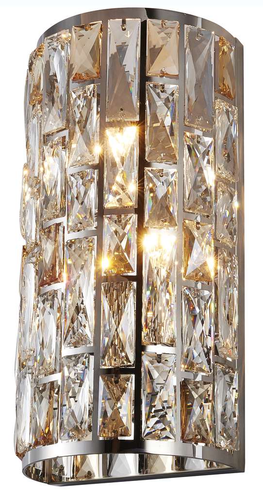 The Myrtle wall light is a modern design wall light with the bling of crystal to compliment the polished chrome frame. This wall light comes with a 3 SES lampholders surrounded by beautiful crystals. Mount it horizontally or vertically on the wall.