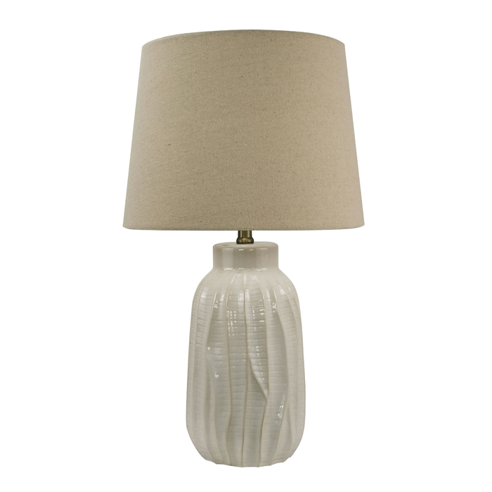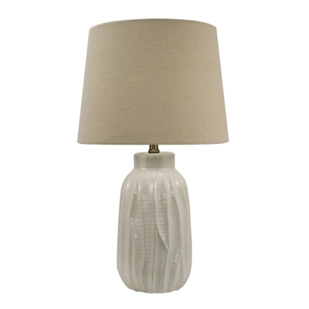 The Oatmeal Organic Coast Table Lamp features a natural linen shade on a gloss ceramic base. This textured look will add an interesting, yet subtle feature to any area of the home. THIS PRODUCT IS NOT AVAILABLE FOR SHIPPING DUE TO HIGH RISK OF DAMAGE. IN-STORE ONLY PURCHASE.