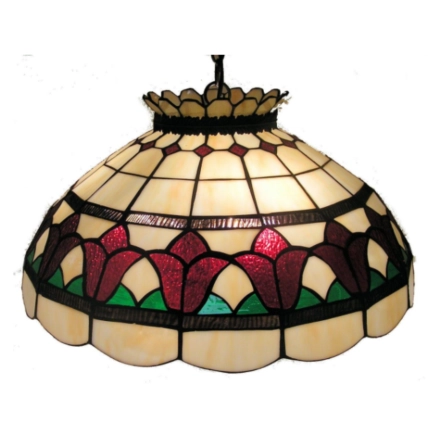 P161333 Beige/Red Flowers 16" Leadlight Pendant