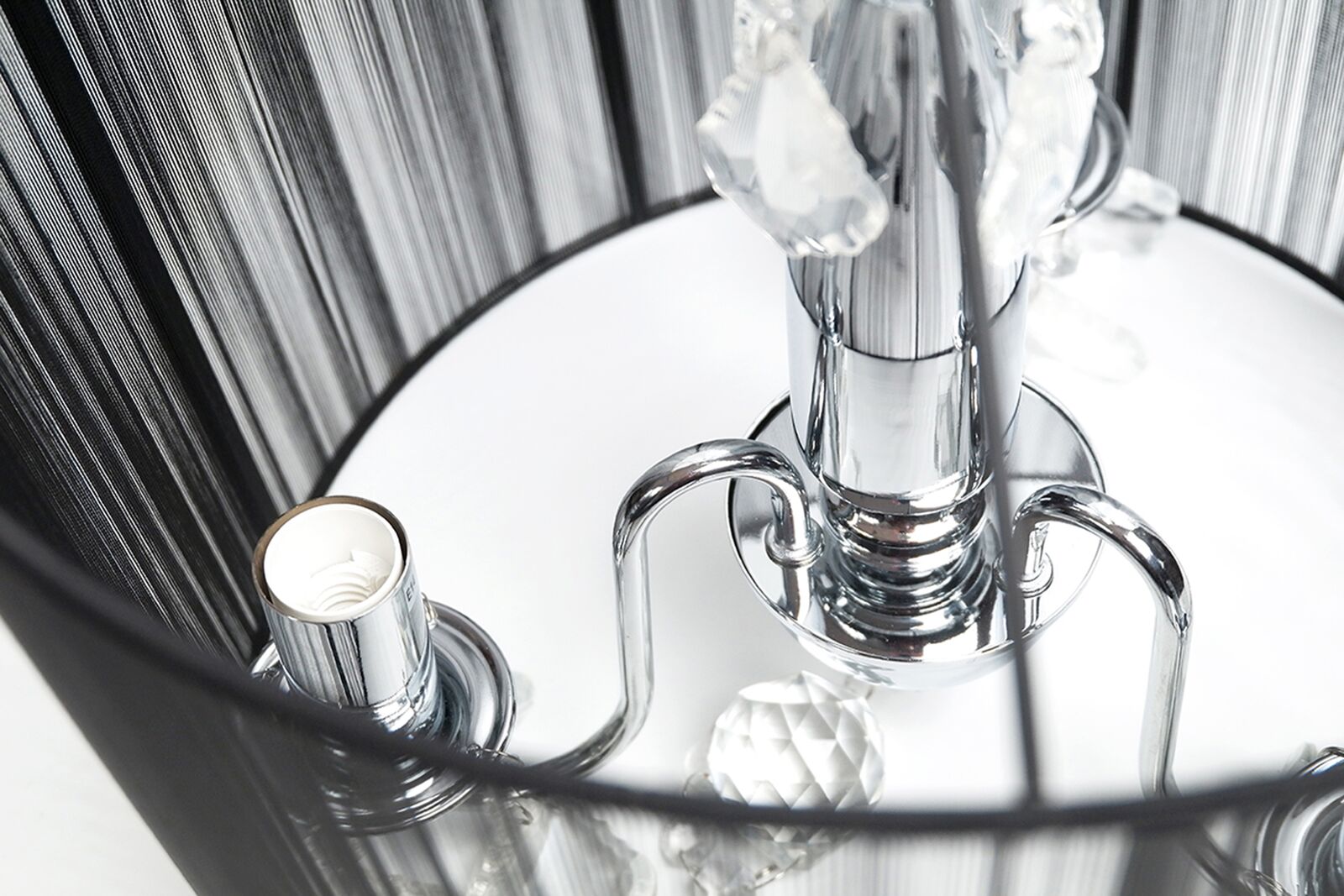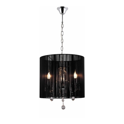The Paris is an elegant chandelier featuring a cotton drum shade surrounded. It will add a touch of class to any bedroom or living area of the home. Also available in white.