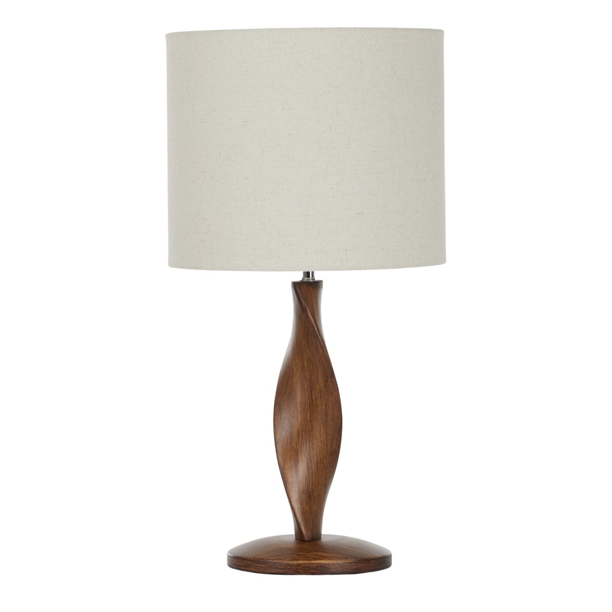 The Priya is a stylish yet simple table lamp. It's striking dark wooden swirl base will add an element of sophistication to any room of the home. It will accommodate many globe types allowing you to create a level of brightness to suit your needs. THIS PRODUCT IS NOT AVAILABLE FOR SHIPPING DUE TO HIGH RISK OF DAMAGE TO THE SHADE. IN-STORE ONLY PURCHASE.