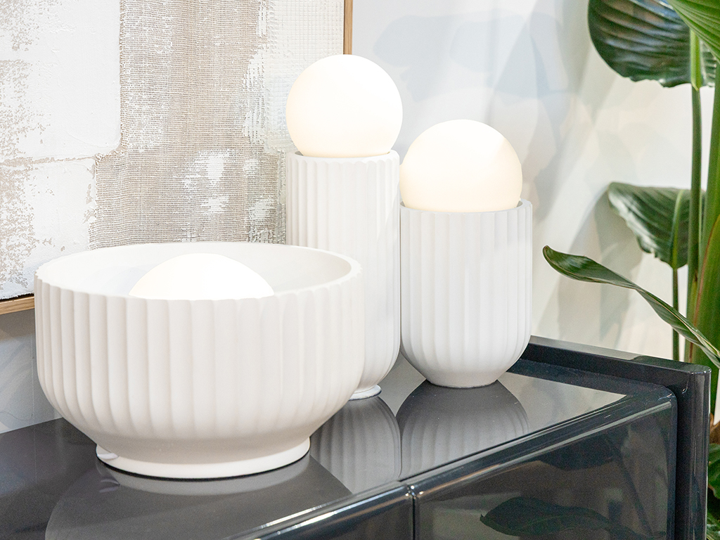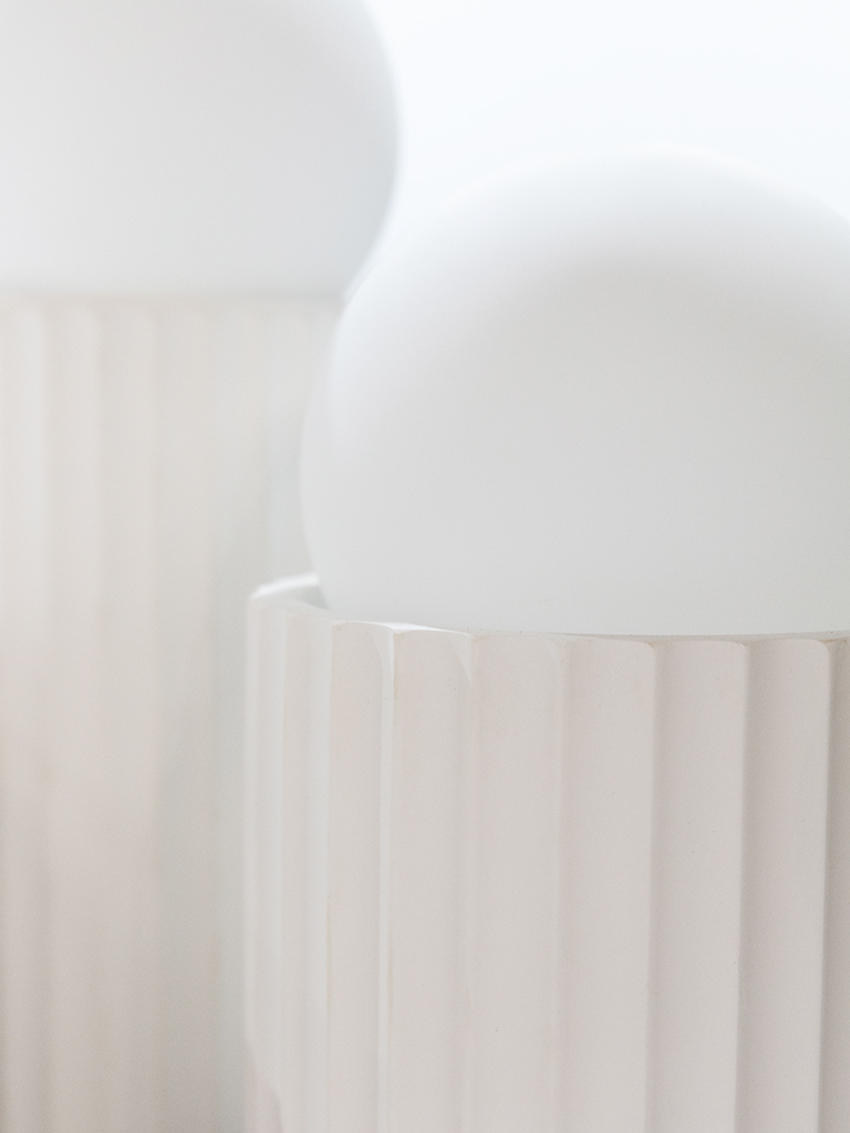 The Ribba is a beautiful white ribbed ceramic table lamp suitable for any room in the home from bedrooms to hallways to living rooms. Perfect to use as a focal point, illuminate certain areas or as some nice ambient light.Also available in a smaller size