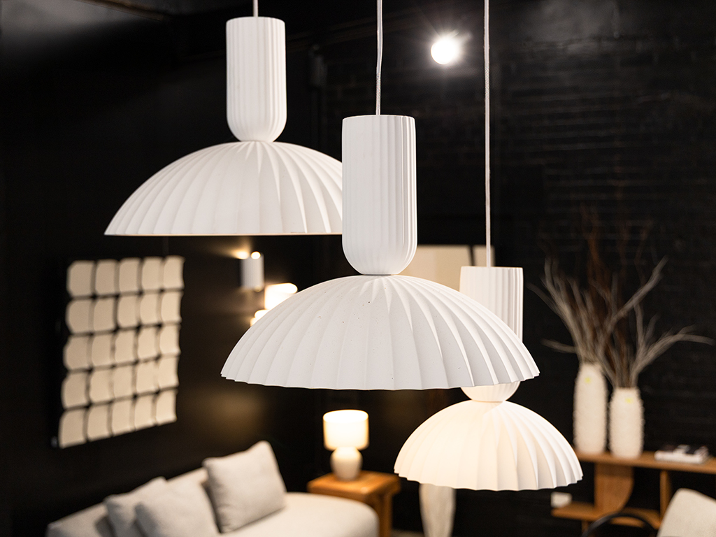 The Ribba is a beautiful white ribbed ceramic pendant light which will create a beautiful lighting feature.  Available in small, medium & large.  Combine all three for a cluster effect.