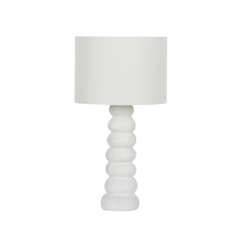 The Siena table lamp features a textured, rounded base and is supplied with a white fabric shade. It will add an interesting feature to any room in the home. THIS PRODUCT IS NOT AVAILABLE FOR SHIPPING DUE TO HIGH RISK OF DAMAGE TO THE SHADE. IN-STORE ONLY PURCHASE.
