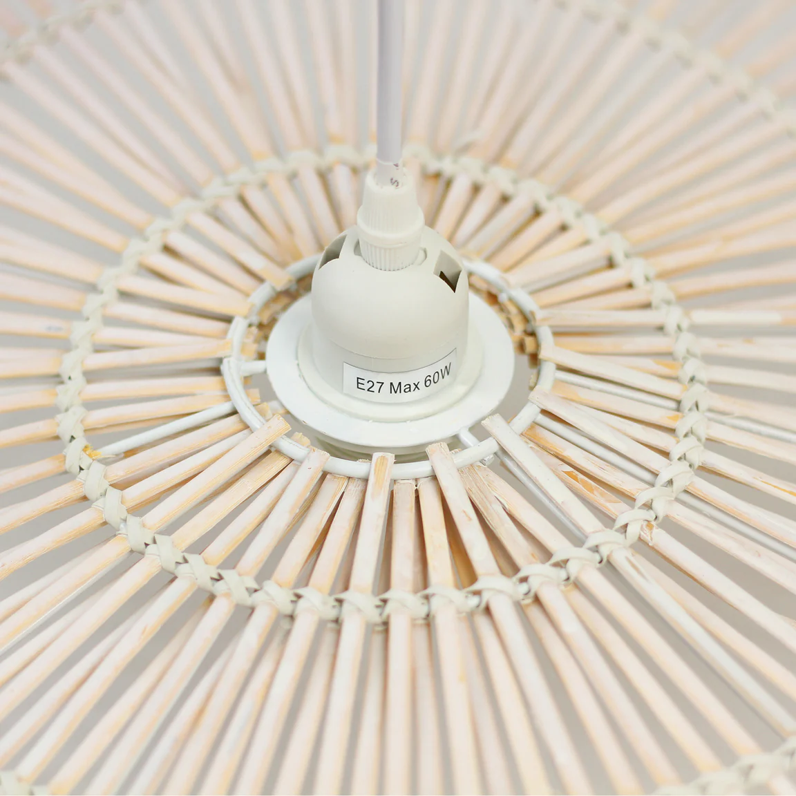 The Solara is made from white washed natural bamboo. It's a simple design with minimal depth, but with it's slight curve and width, it will add a great feature to any room of the home. Hang as a single drop over a table or in a staggered cluster formation from a high ceiling or void area. This product is not available for shipping due to high risk of damage. Instore purchase only.