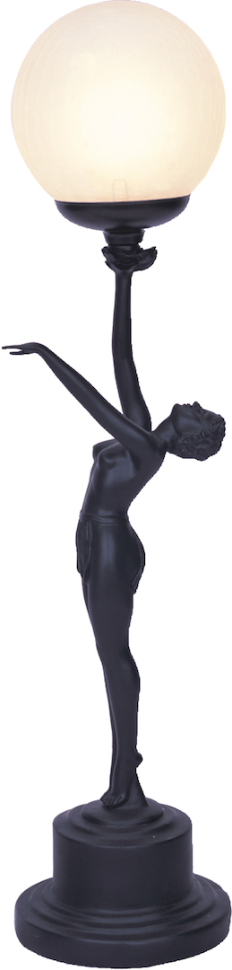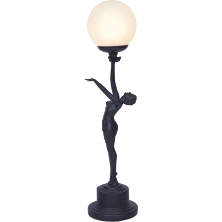 The Black Art Deco table lamp features a beautiful lady holding a round glass ball. It will add a stunning feature and through the ball provide a soft mood light to any room in the home. If not currently in stock we can order this piece in - please allow 2-3 weeks freight time.