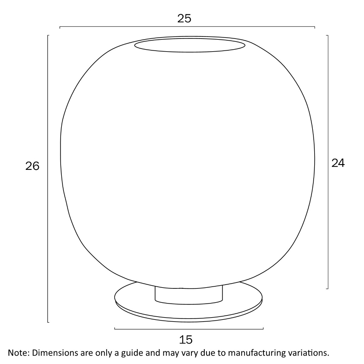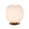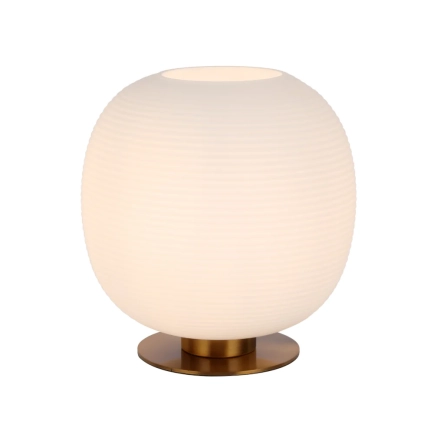 The Viken table lamp is a unique and elegant lighting option for any room in your home. It features a mouth-blown sphere with a ribbed concentric surface, adding a touch of texture and dimension to the design. The shallow base is finished in antique gold, giving the lamp a vintage and luxurious feel. The opal matt sphere provides a warm, diffused light. Also available in chrome glass and gold base.